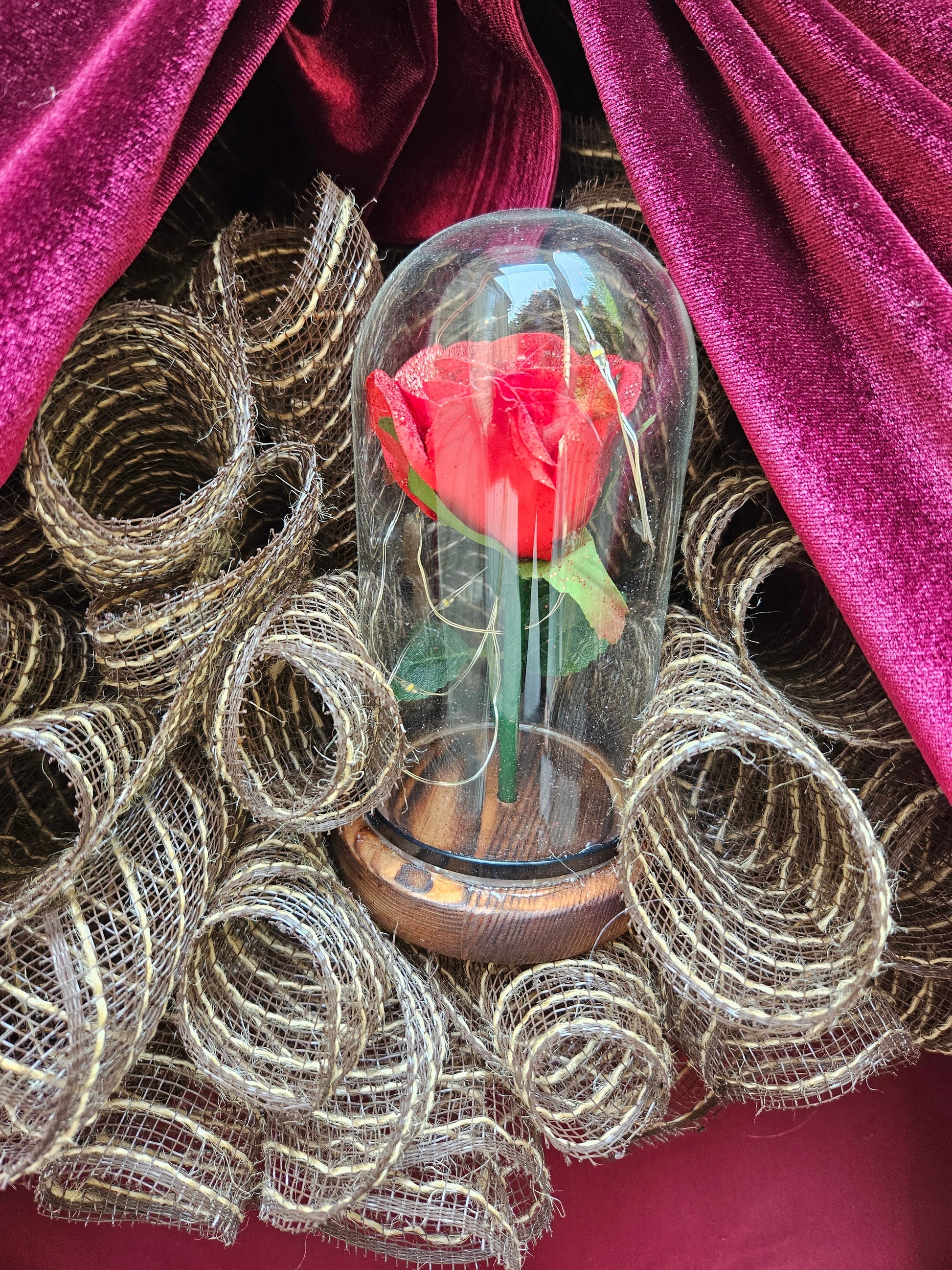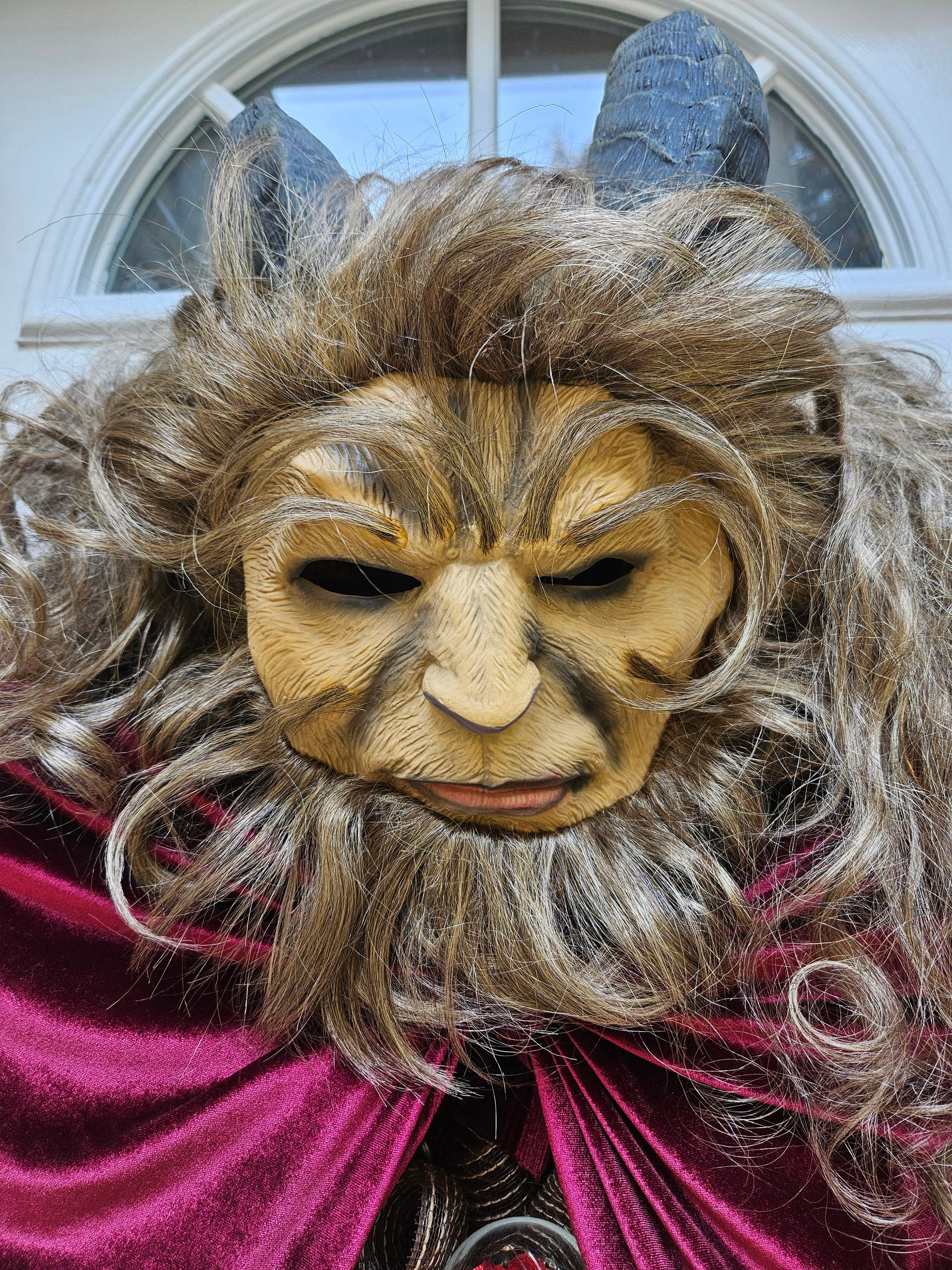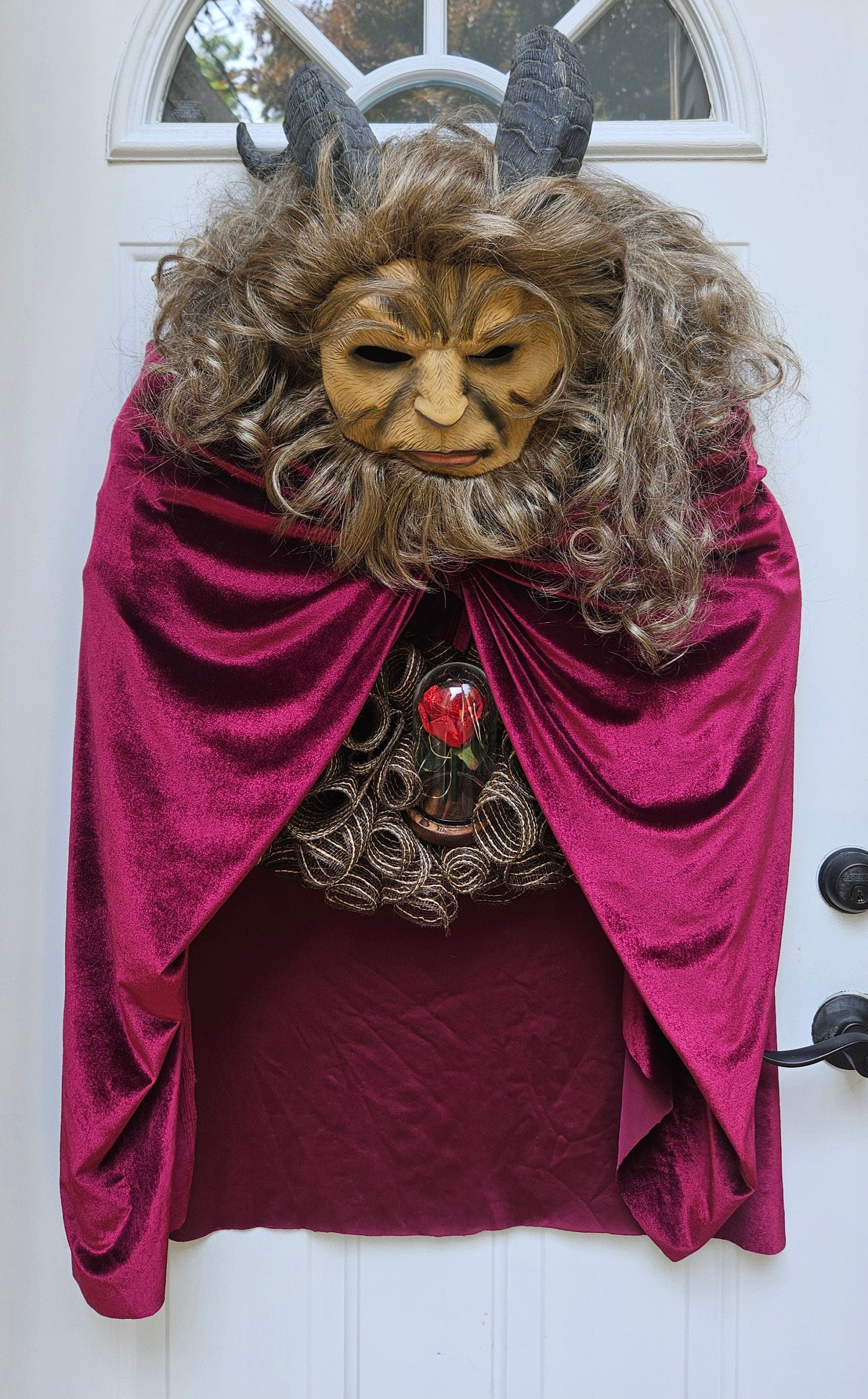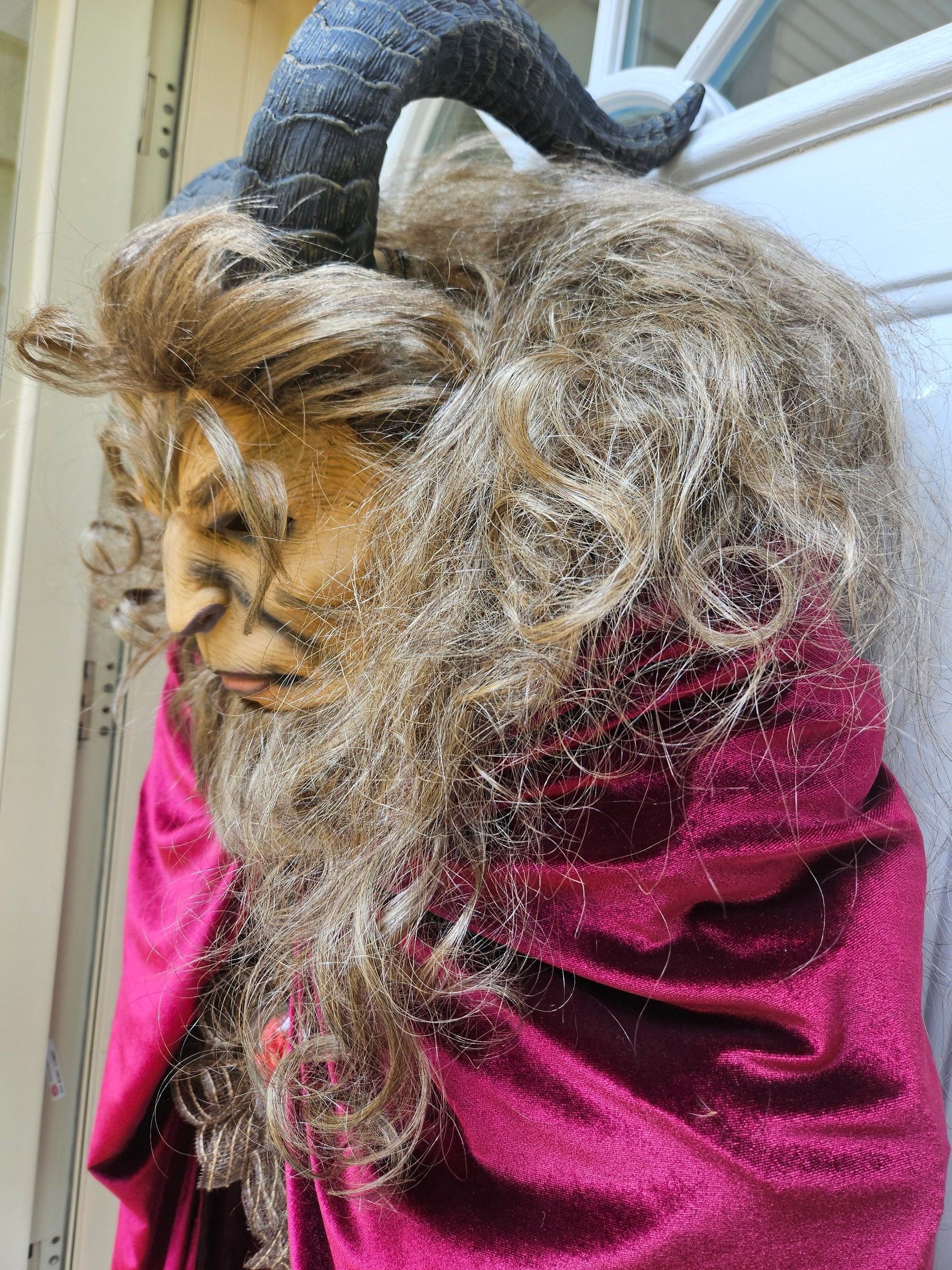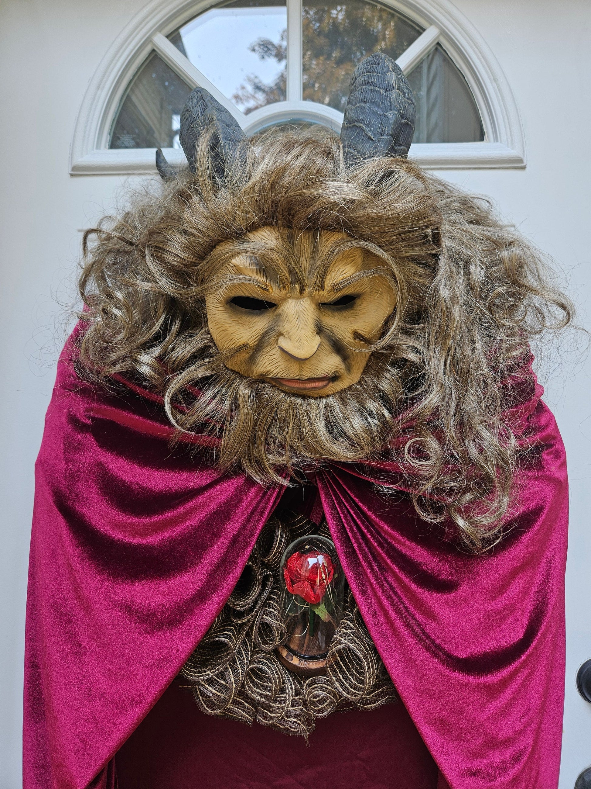 Would not recommend hanging outside in the weather. The Beast mask is made out of latex, but the cape is fabric.