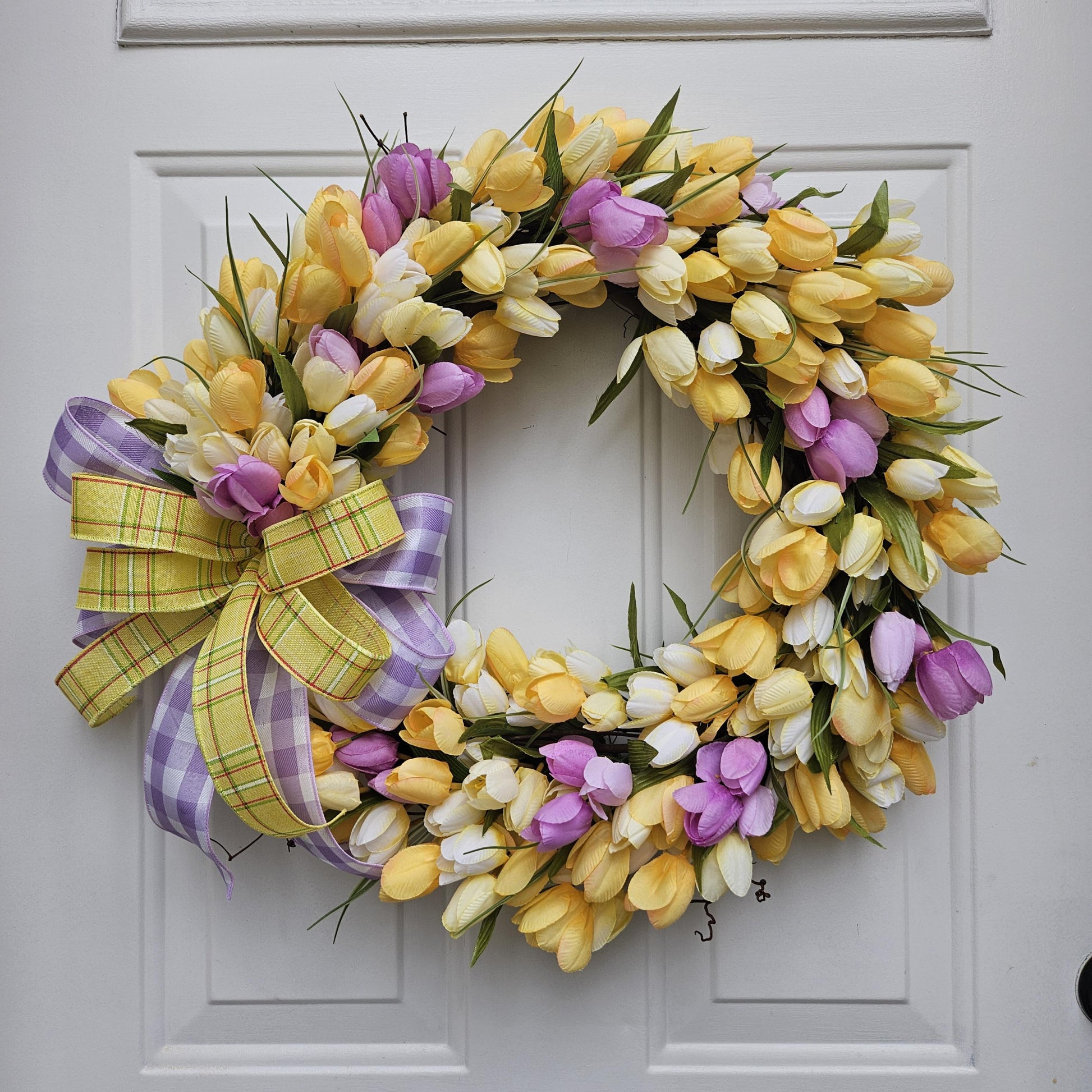 Introducing our stunning, yet simple, yellow and purple tulip wreath.